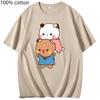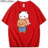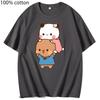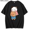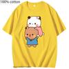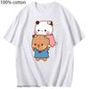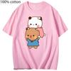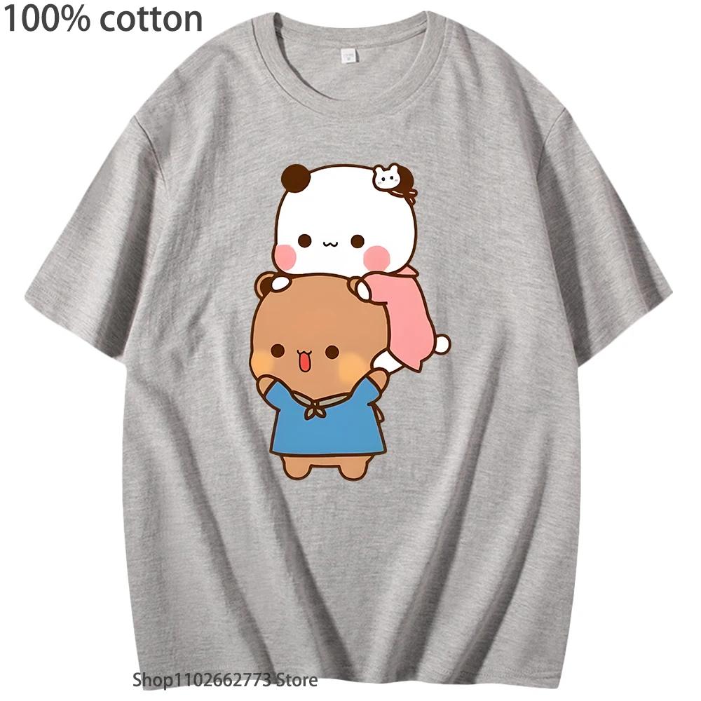 Kawaii DuDu and BuBu Enjoying Their Time Tshirts Cute Panda Bear Graphic Shirt Korean Styele Women Clothes Cotton Men Tees