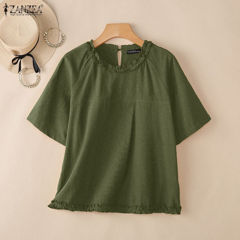 ZANZEA Women Casual Round Neck Solid Color Short Sleeve Blouse