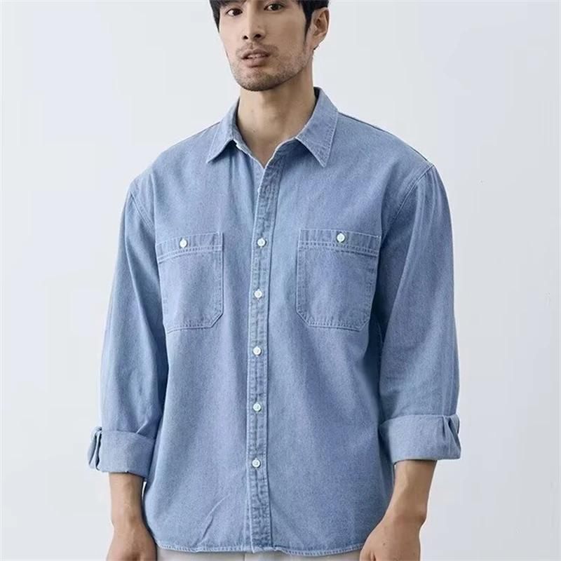 2026 Spring Autumn Men Slim Fit Denim Shirts Men Casual Solid Color Shirts Male Long Sleeve Jeans Shirt Fashion Cowboy Shirt