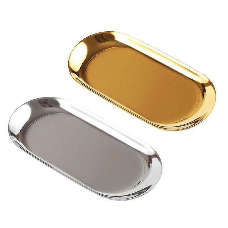 Gold Oval Jewelry Dish Stainless Steel Organizer Trays 18X8.5X1.5CM For Women Friends Family Co-Workers 2Pcs