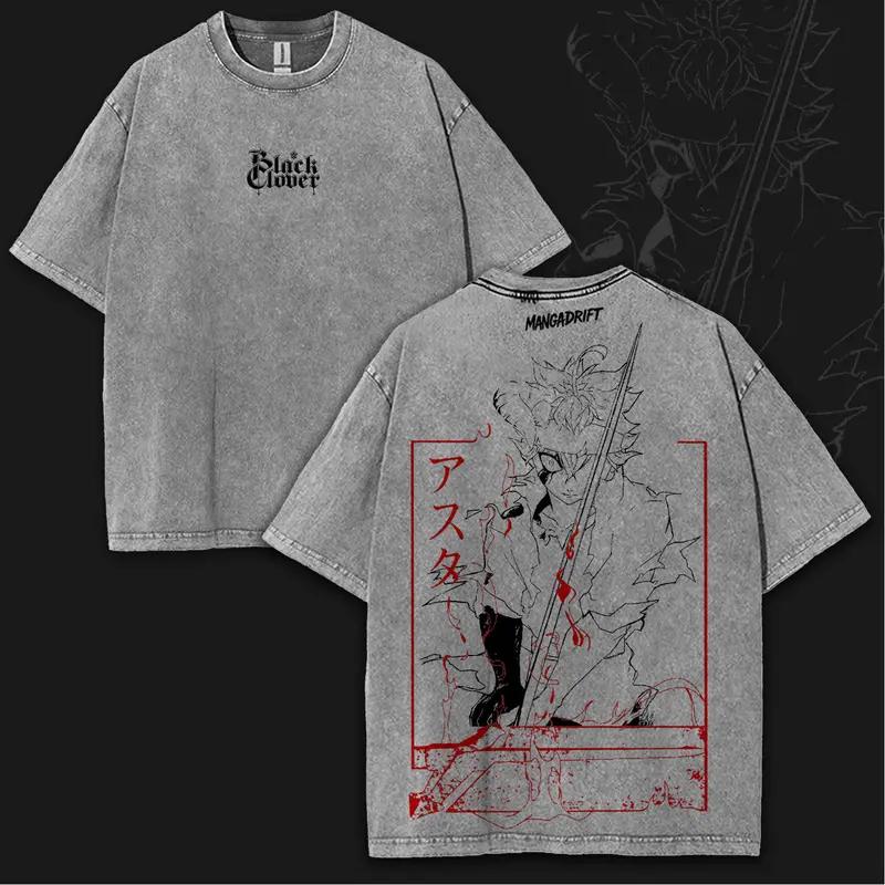 Black Clover Anime T-shirt For Men Women Clothing Asta Graphic Short Sleeve Tees Oversized Tops Harajuku Cotton Washed T Shirt