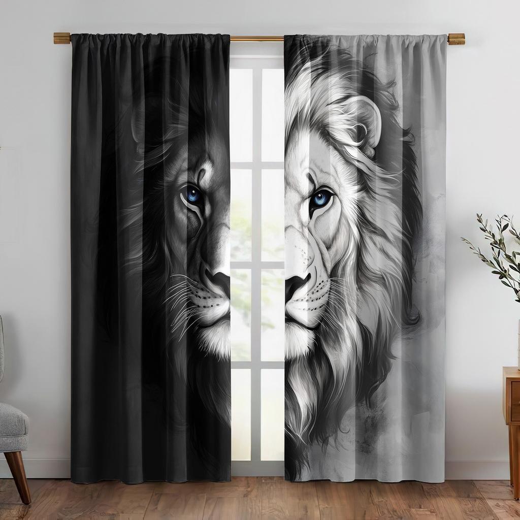 2pc Lion Print Pattern Curtains Suitable for Bedroom Living Room Kitchen Curtains Machine Washable Polyester