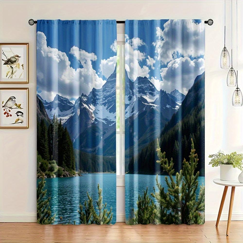 Curtain2pcs Moran Blackout Curtains- Polyester Durable Cordless Rod Pocket Scenic Mountain Lake Landscape Print Machine
