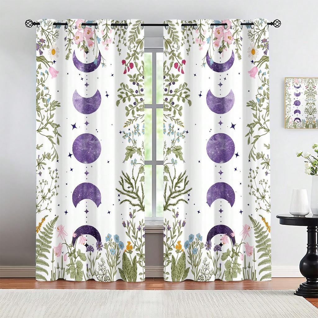 1 Set Of 2 Pcs Dreamy Sci-Fi Style Navy Blue & Black Ombre Galaxy Print Curtains Creating Atmospheric Feeling Digital Printin