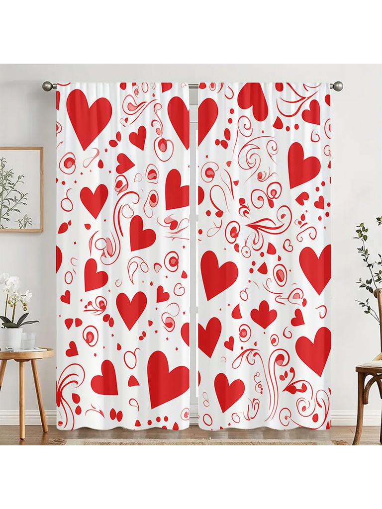 2pcs Red and White Heart-shaped Patterned Curtains Classic Romantic Bedroom and Living Room with Decorative Drawbar Pockets