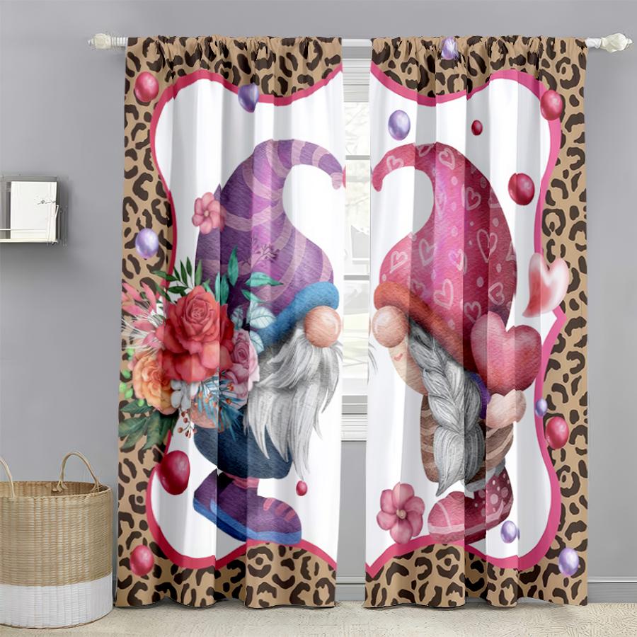 2PCS Leopard Print Heart-shaped Gnome Curtains Sweet and Cool Style Bedroom and Living Room Decorative with Drawbar Pockets