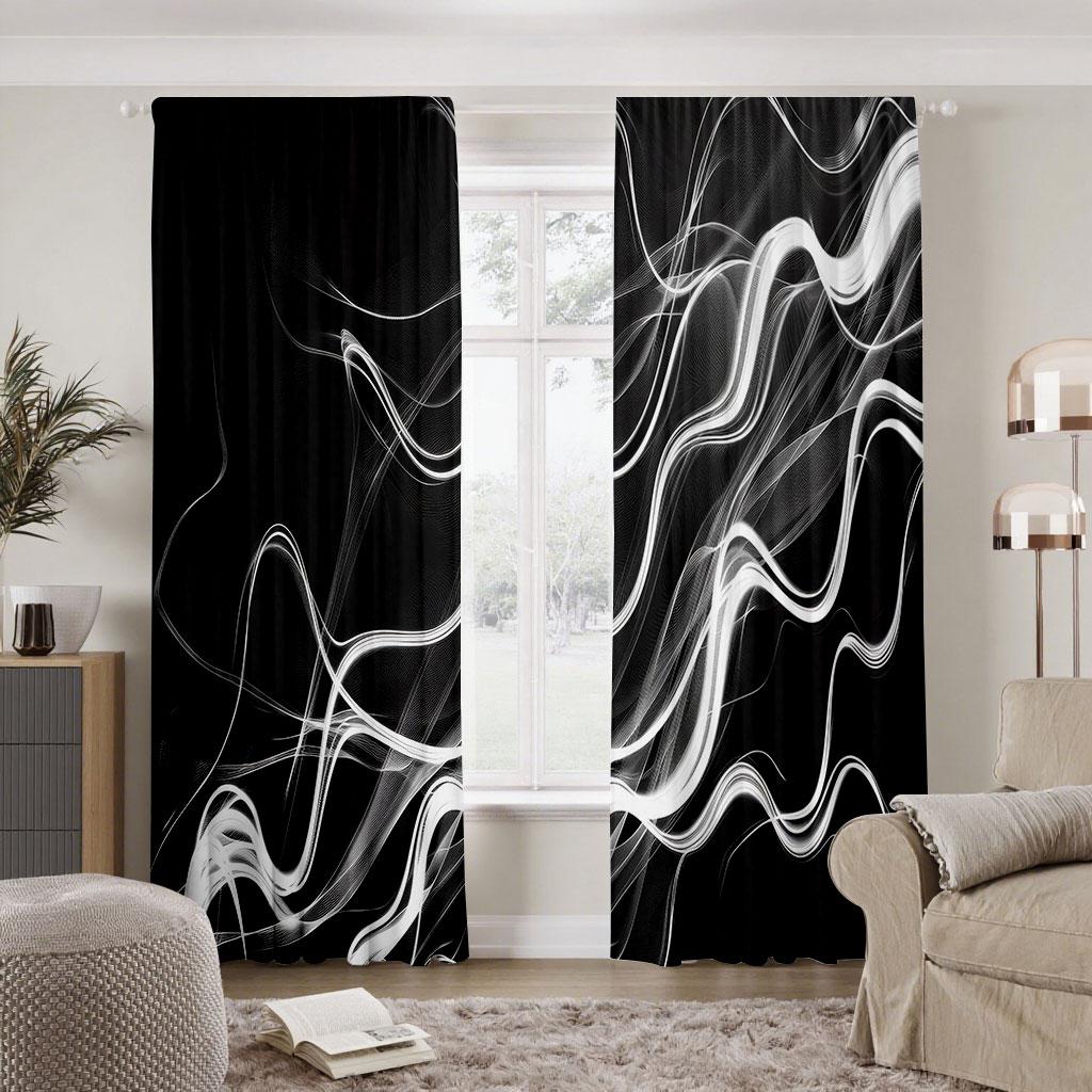 2pcs Black and White Streamlined Curtains Modern Art Style Living Room Bedroom Pull Rod Pocket Window Decoration