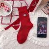 New Year Red Socks Featuring Children's Embroidery and Cartoon-style Cartoon Lion Puppet Ankle Socks with Festive Non-boned Pile-up Design