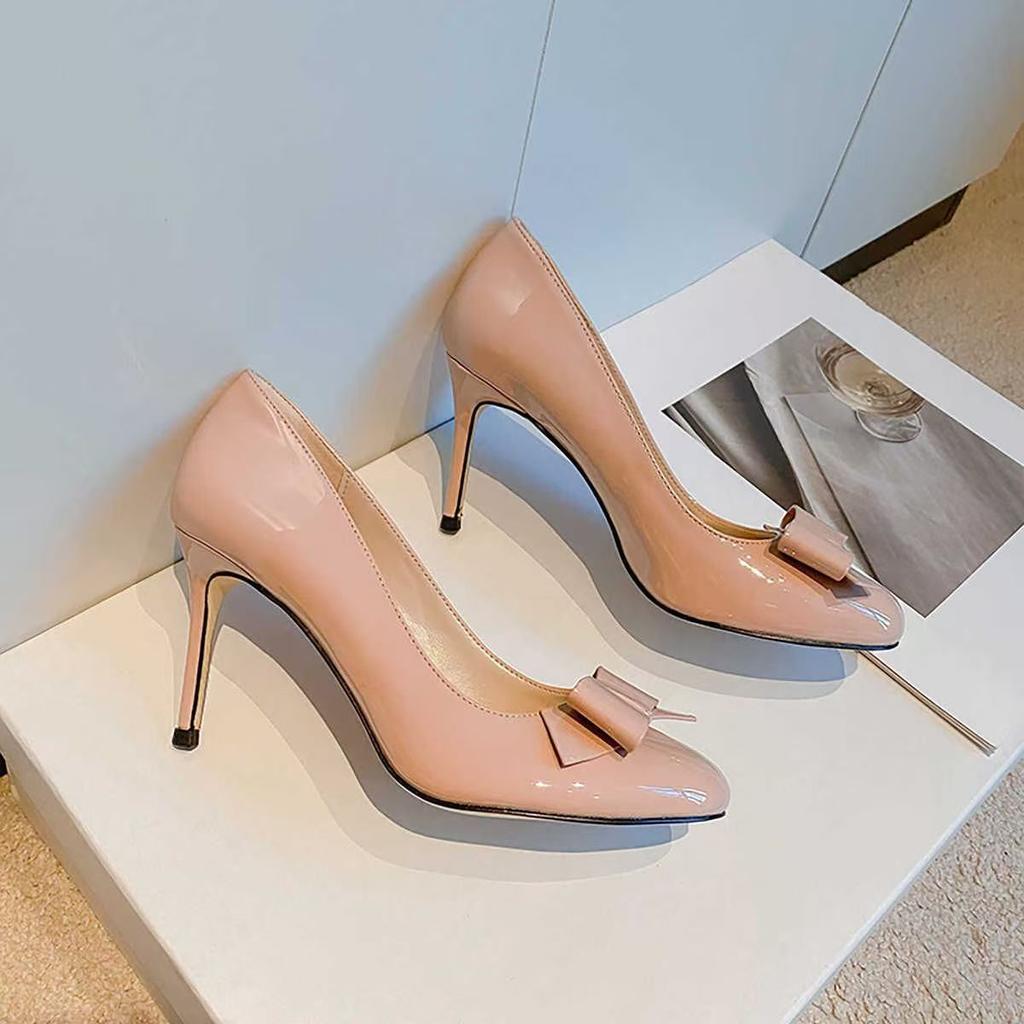 Temperament Bow Women's High Heels Spring and Summer French with Skirt Light Mouth Stiletto Single Shoes