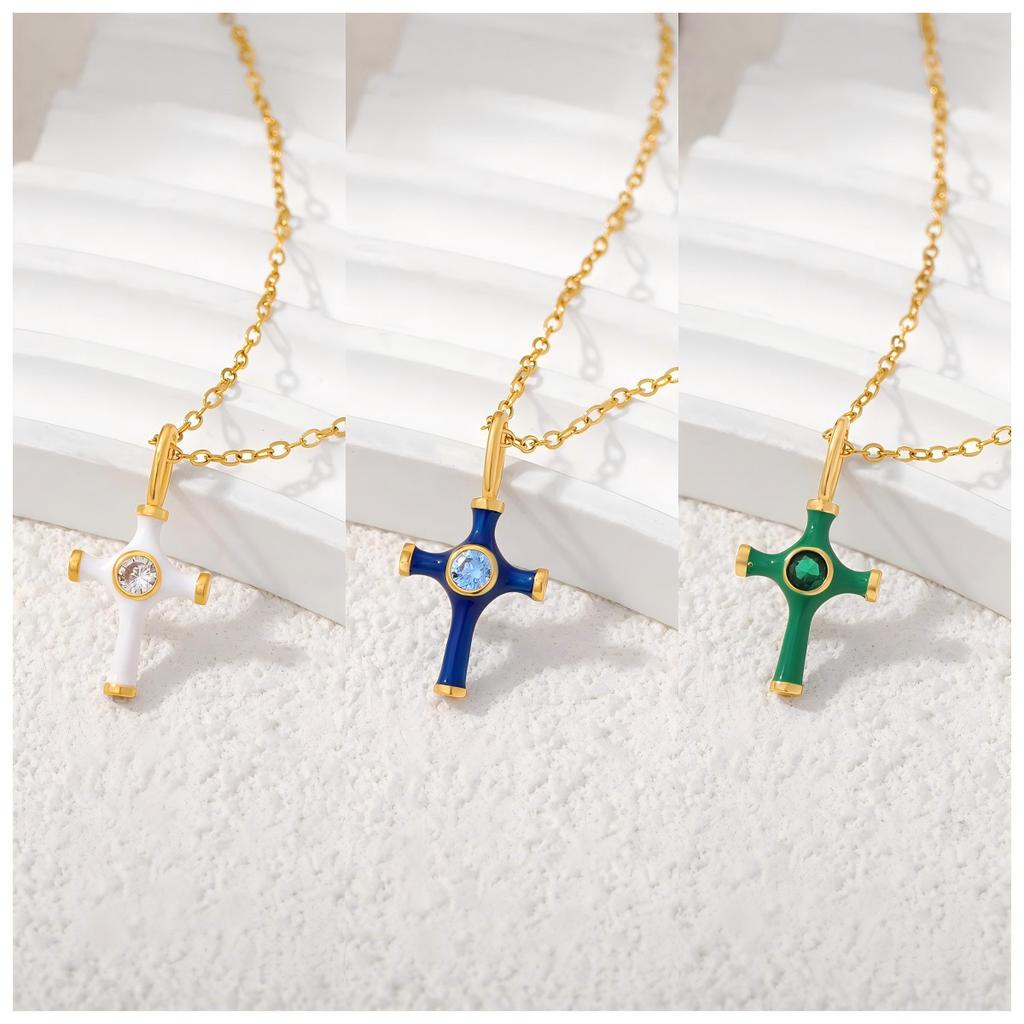 Color Oil Dripping Cross Necklace Stainless Steel Necklace Light Luxury Inlaid Zircon Niche Personalized Jewelry