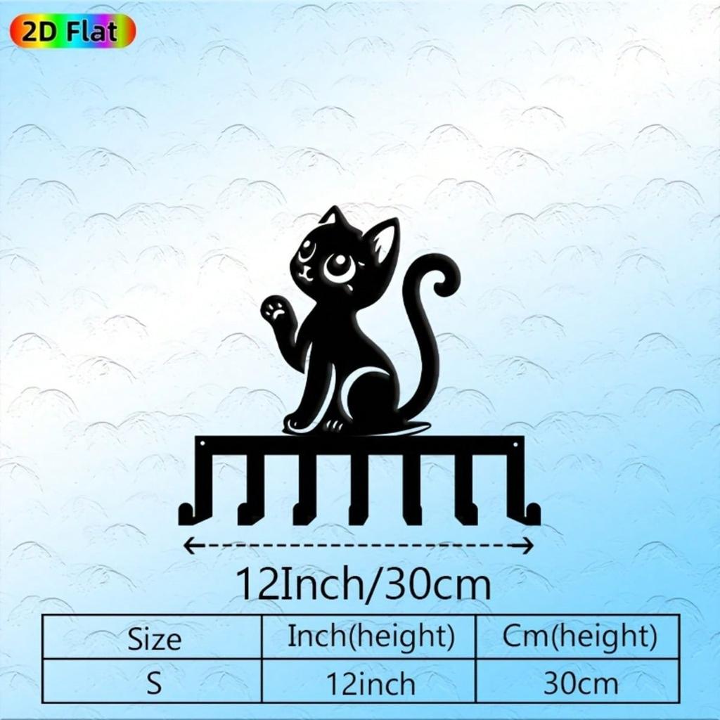 Modern Cat Key Holder Wall Mounted Metal Key Organizer with 7 Hooks Ideal Gift for Cat Lovers