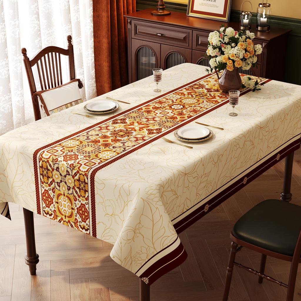 American Style Vintage Table Runner with Floral Jacquard Weave for Coffee Table Living Room Home Decoration Outdoor Picnic Mat
