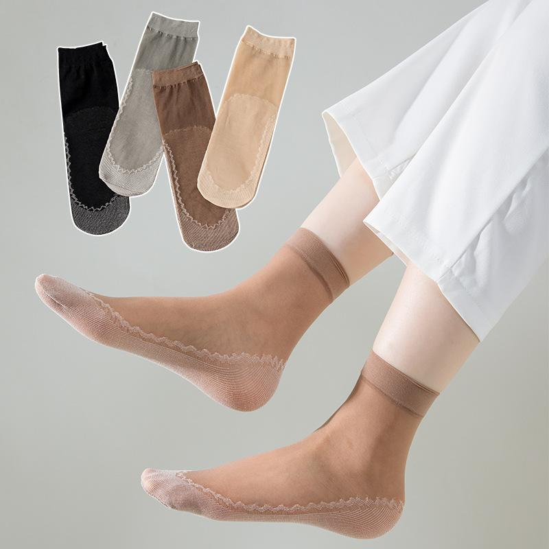 5 Pairs of Cotton-bottom Moisture-absorbing Silk Stockings - Summer Lightweight, Breathable Women's Solid-color Anti-slip Crystal Stockings