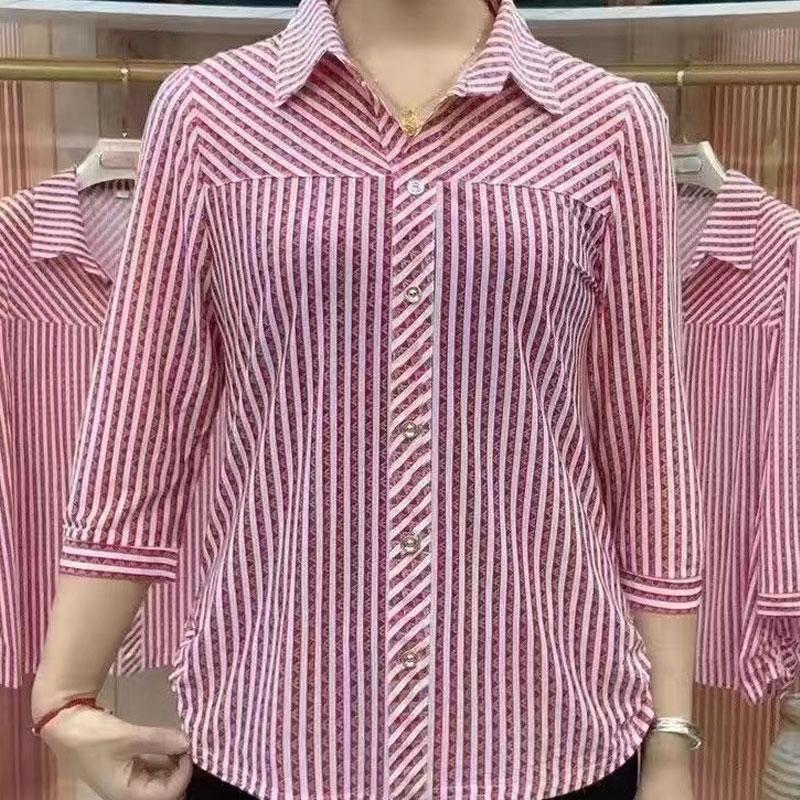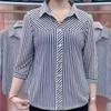 Fashion Loose All-match Striped Printed Shirt Summer Women's Clothing New 3/4 Sleeve Casual Turn-down Collar Buttons Blouses