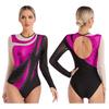 Women Ballet Dance Leotard Rhythmic Gymnasytics Figure Skating Yoga Bodysuit Long Sleeve Metallic Contrast Color Dancewear