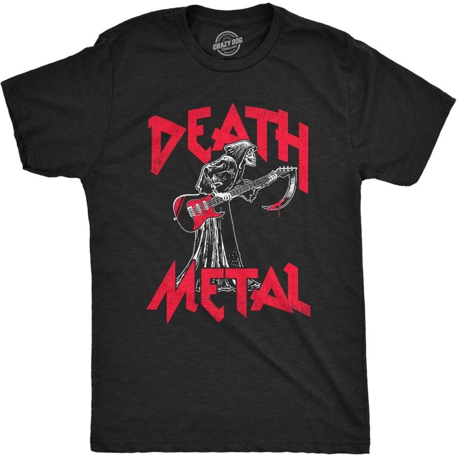 Mens Death Metal T Shirt Funny Brutal Grim Reaper Bloody Guitar Tee for Guys