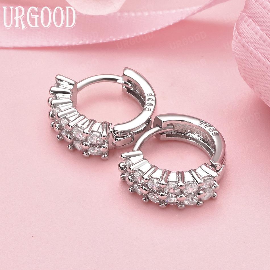 925 Sterling Silver Fashion AAA Zircon Round Pierced Earrings Wedding Jewelry
