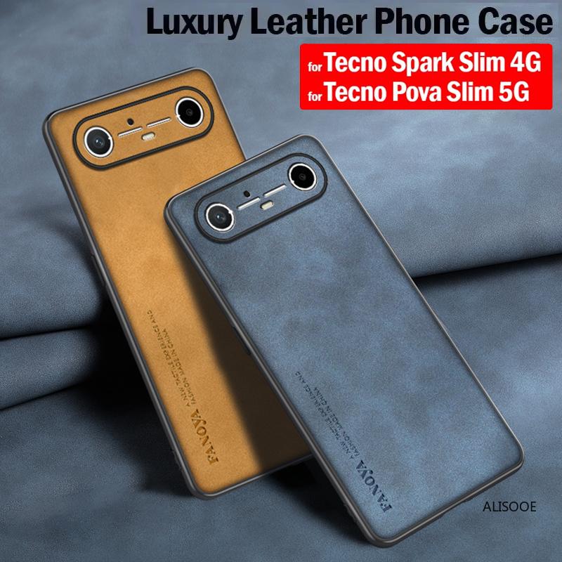Frosted PU-Leather Funda for for Tecno Spark Slim 4G Case for Tecno Pova Slim 5G Cover Matte Plastic Full Protection Back Capa