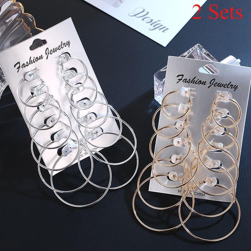 2 Sets Big Round Hoop Earrings for Women Circle Woman Ear Studs Jewelry Earring Sets