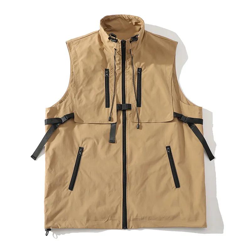 Spring Autumn Men Trendy Motorcycle Workwear Vests Men Zip-Up Stand Collar Vest Men Design Casua Multi Pocket Waistcost