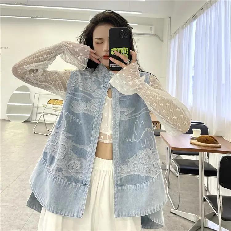 Women's Summer Lightweight Denim Vest Causal Sleeveless Jacket for Layering