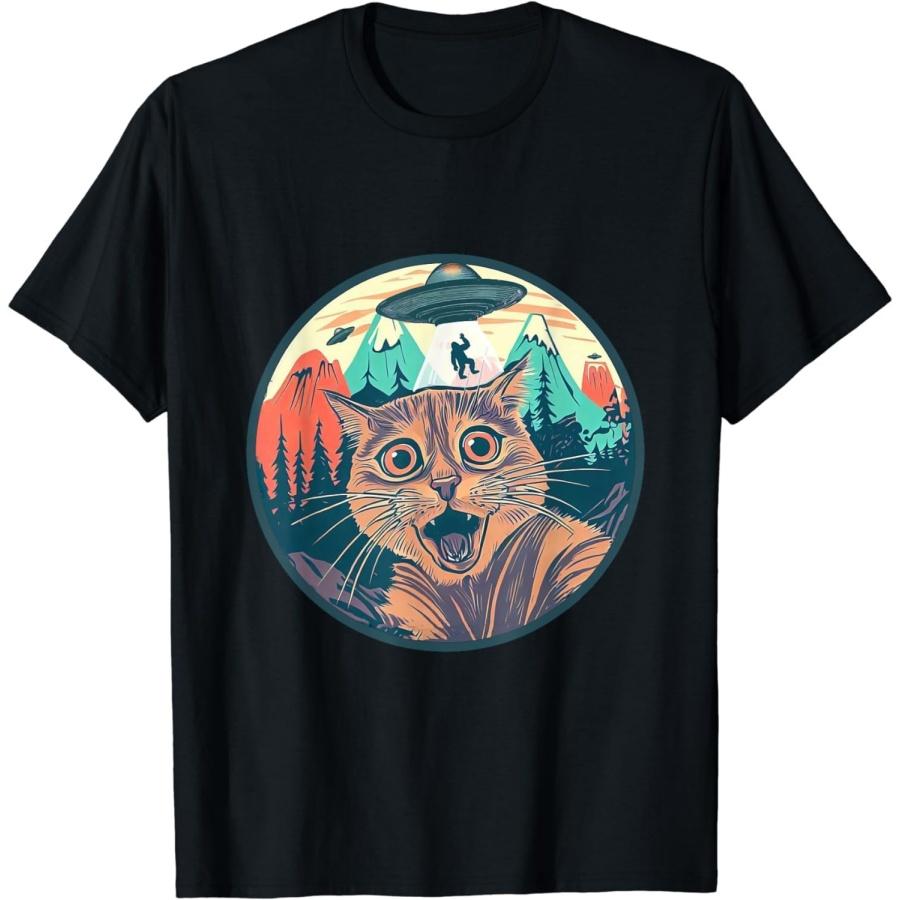 PiWine Alien Cat Funny Vintage T-Shirt Graphic Tees for Women Men Unisex