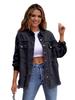Solid Color Women's Purple Distressed Denim Shirt Jacket Loose Casual Long-Sleeve Overshirt