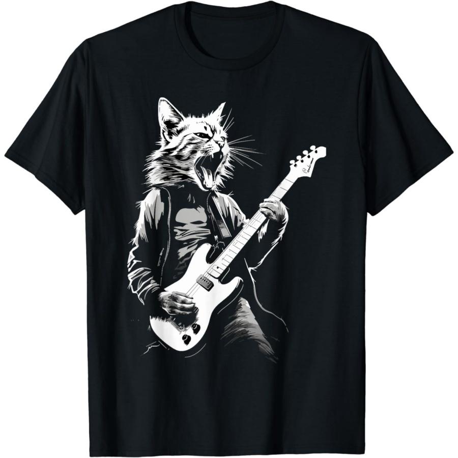Rock Cat Playing Guitar Funny Guitar Cat T-Shirt