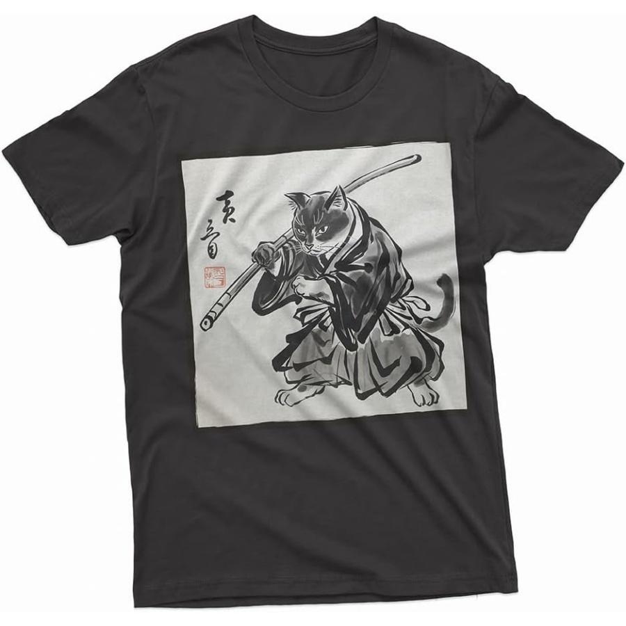Samurai Cat T-Shirt Japanese Ink Wash Art Style Cool Martial Arts Graphic Tee for Cat Lovers
