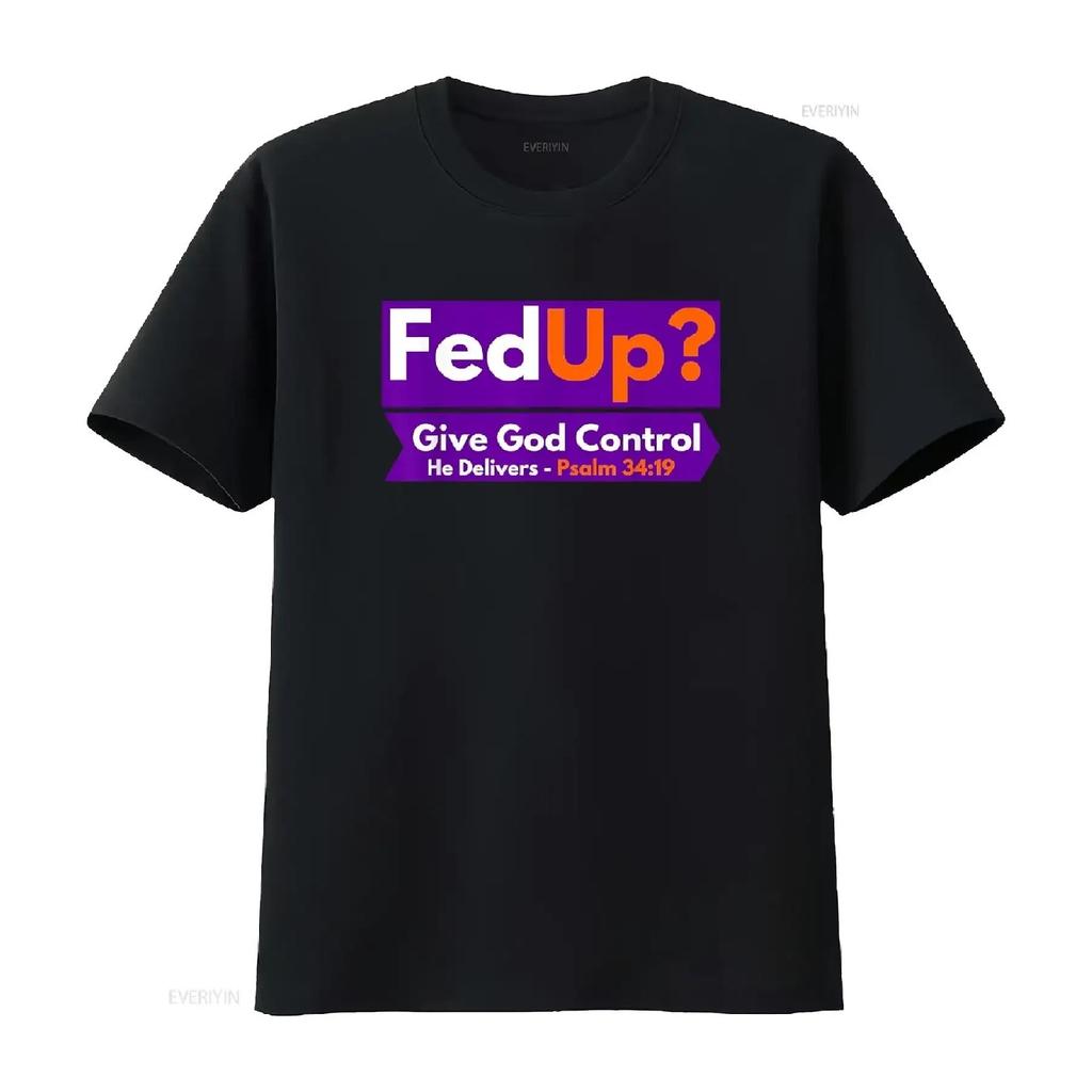 FedUp Give God Control Psalm 34 19 Christian Bible Jesus T Shirt Vintage Washed Fashion Comfortable Graphic Stretched Versatile