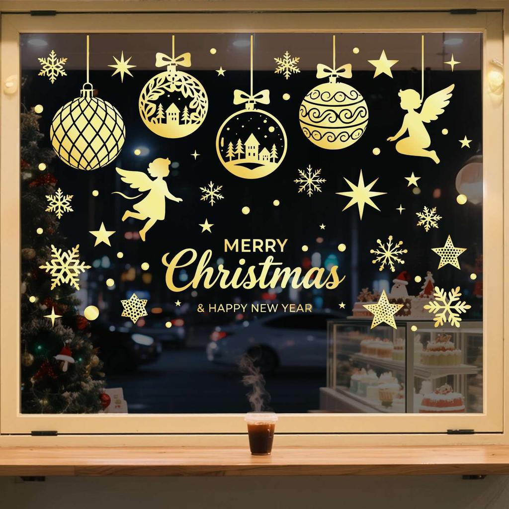 Christmas Ball Angel Static Electricity Glass Window Christmas Holiday Display Window Sliding Door Decorative Window Sticker