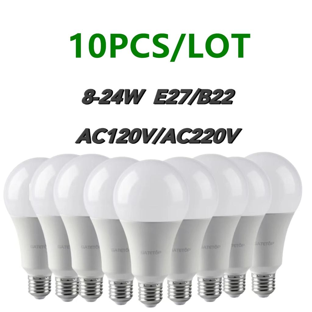 10PCS Led Bulb Lamps A60/A80 E27 B22 AC120V/AC220V Light Real Power 8W-24W 3000K/4000K/6000K Lamps For Home and Office Lighting