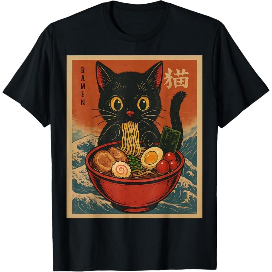WJHmmxyzLO Funny Cat Ramen Japanese Kawaii Anime for Women Men T-Shirt