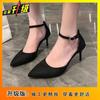 Design Sense One-word Buckle Sandals Fairy Style Pointed Head Stiletto Sandals Spring and Summer