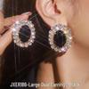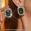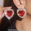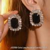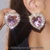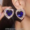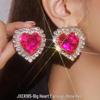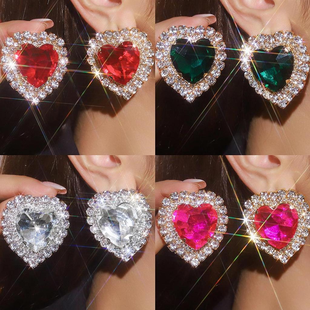 Exaggerated Geometric Heart Crystal Stud Earrings: Pink, Green, Black - Versatile Evening Ear Accessories
