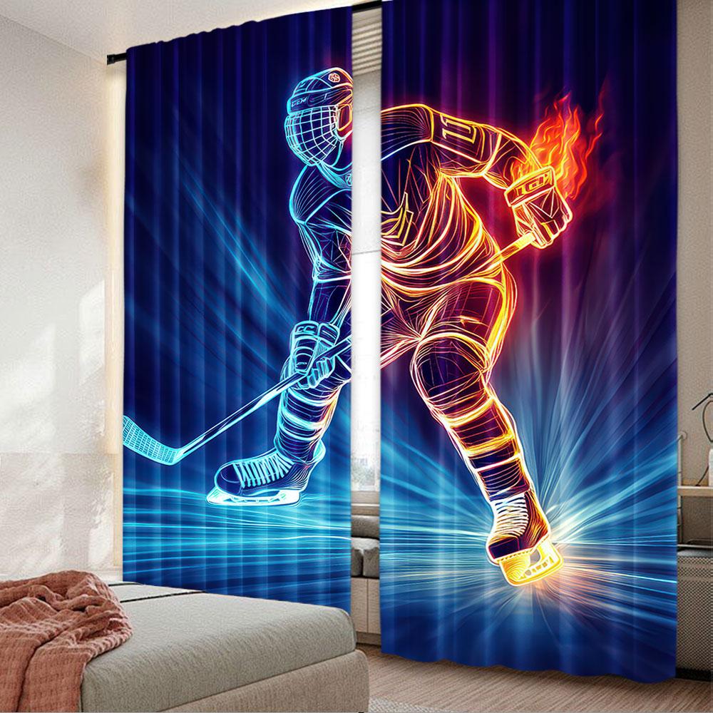 2Pcs Teens Ice Hockey Window Curtains For Bedroom Living Room Sports Games Theme Decor Rod Pocket Design Modern Simplistic