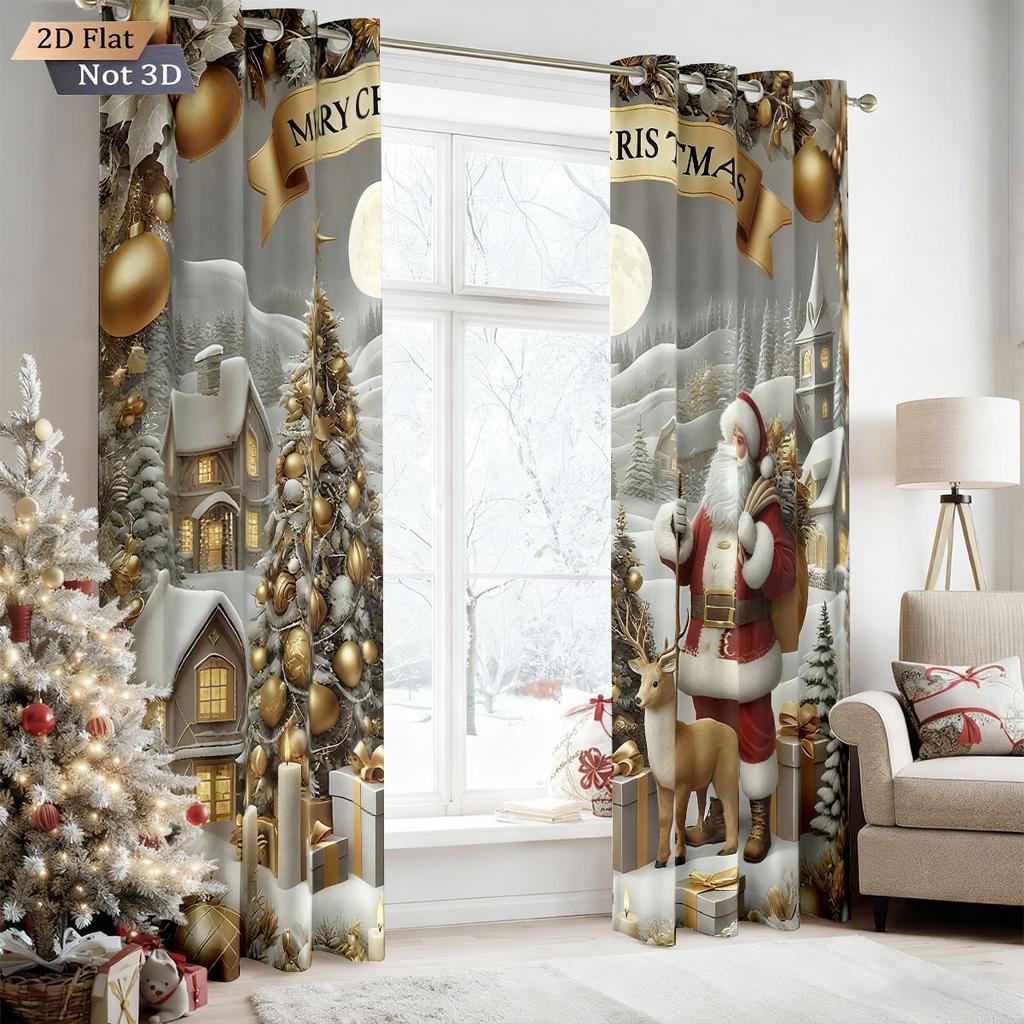 2 Christmas Tree Santa Claus Print Perforated Blackout Curtains Various Size Living Room Insulation Decoration Machine Washable
