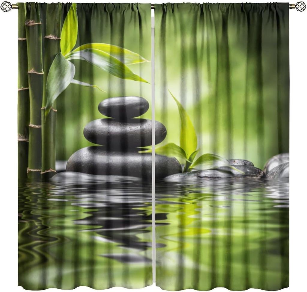 Zen Stone Blackout Curtains Asian Japanese Green Bamboo Black Zen Stone Relaxing Window Drapes for Bedroom Living Room 42" W X