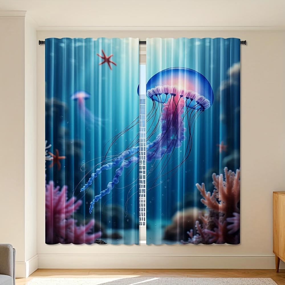 2pcs Mermaid Party Window Curtains Rod Pocket Style Semi-Sheer Polyester Pongee Decorative Panels for Living Room Kitchen Be