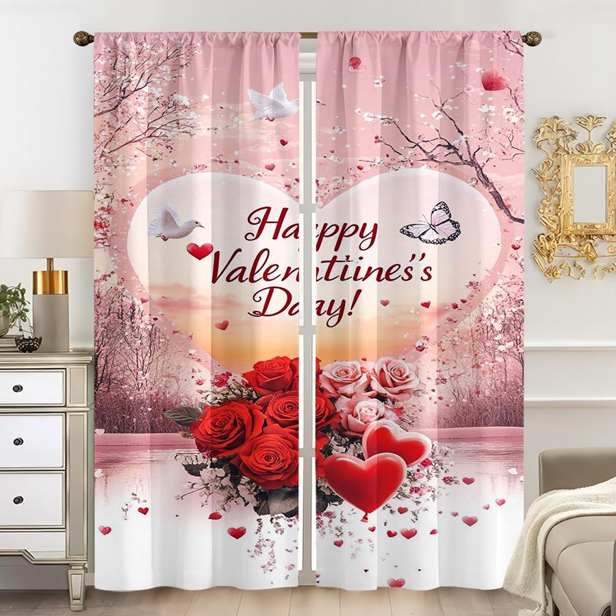 2PCS Pink Spring Scenery Love Curtains Gentle and Romantic Style Bedroom and Living Room Drawbar Pocket Decorative Curtains