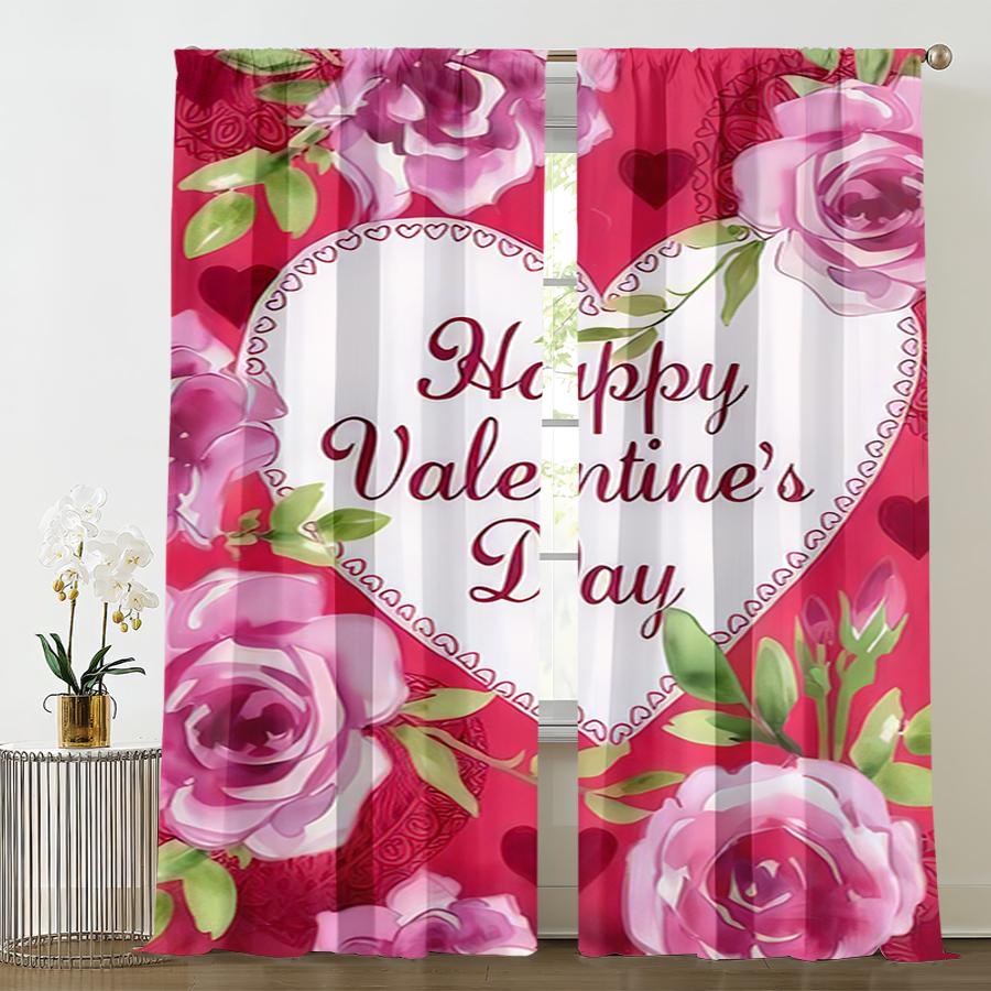 2PCS Rose Red Valentine's Day Curtains Gentle and Romantic Style Bedroom and Living Room Drawbar Pocket Decorative Curtains