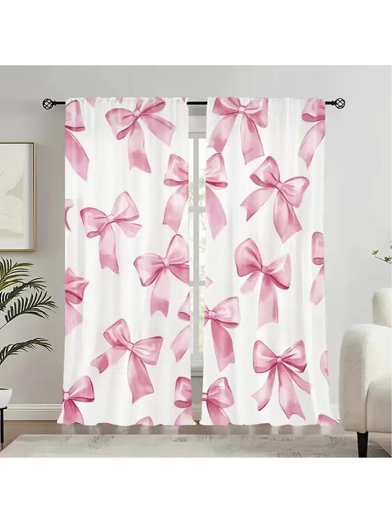 2PCS Pink Bow Curtains with Rod Bag Design for Privacy Protection Suitable for Various Decorative Scenarios
