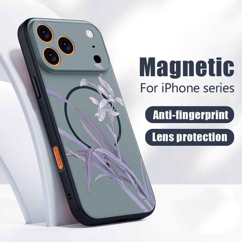 Magnetic For Magsafe Case For iPhone 17 Pro Max Purple Orchid Floral Pattern Skin Feeling Cover For iPhone 16 15 14 13 Pro Max