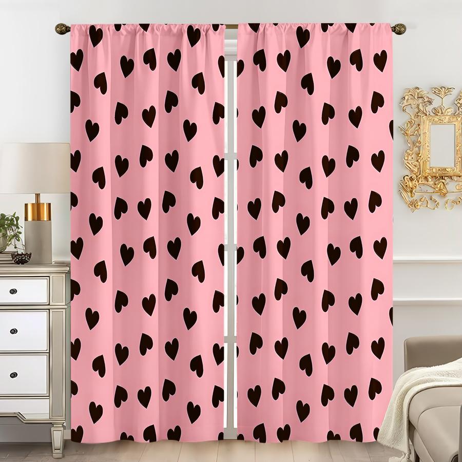2PCS Pink Brown Heart-shaped Curtains Sweet and Cool Style Bedroom and Living Room Decorative Curtains with Drawbar Pockets