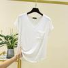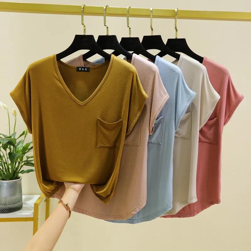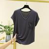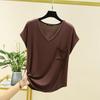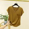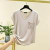 Women's Summer Short-sleeved Top with Thin Solid Color Loose Large V-neck Household Clothes