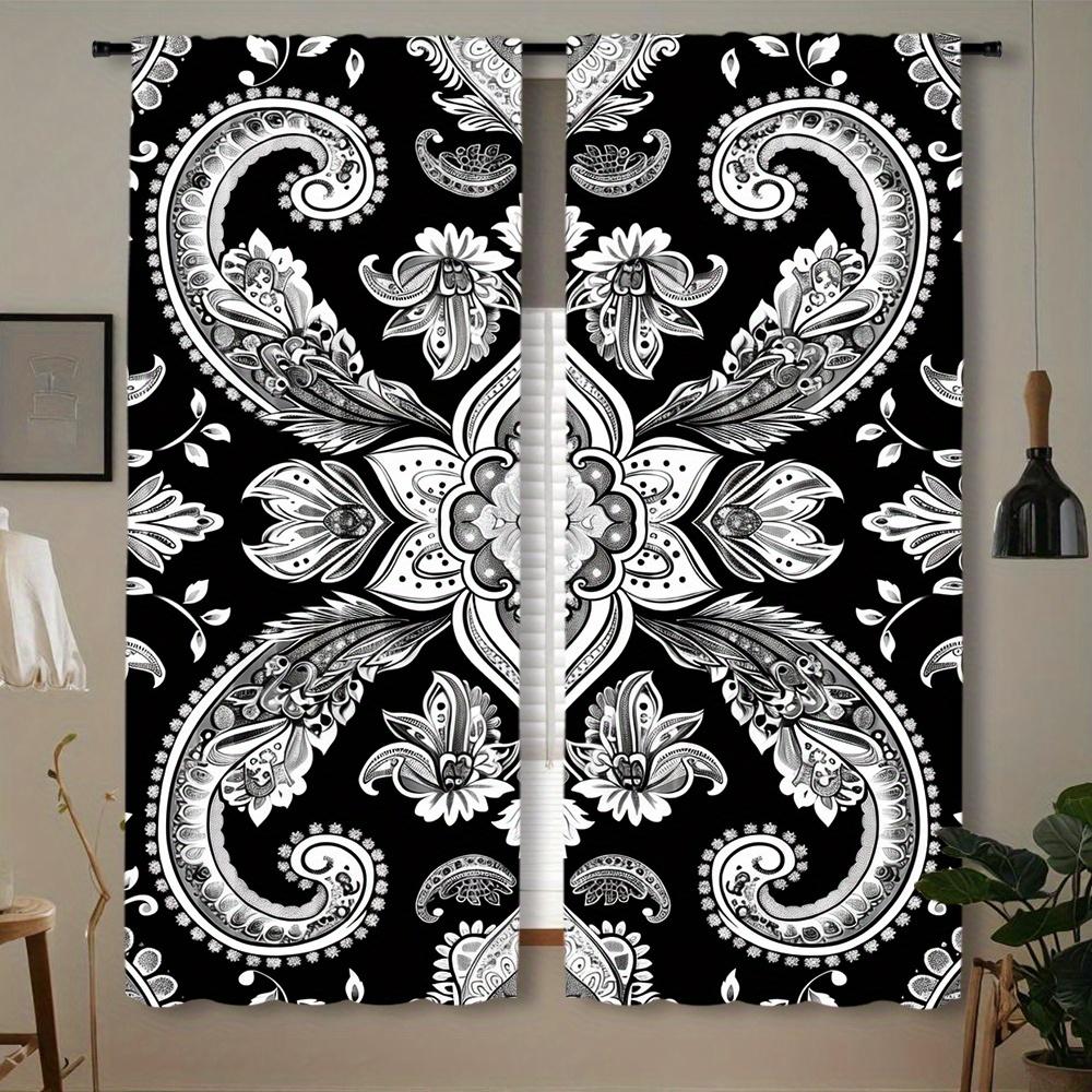 2pcs Black Floral Curtains Bohemian Mandala Flowers Decorative Window Drapes Rod Pocket Window Treatment For Bedroom Living