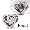 S925 Silver Heart Cat Paw Charms Beads for Women DIY Bracelets Fine Jewelry Birthday Gifts