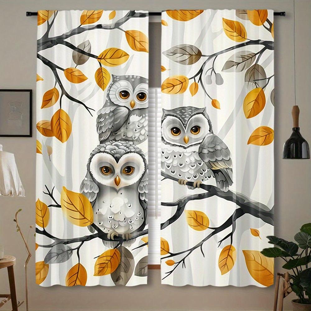 2 Pieces Owl Printed Curtains: Decorative Rod Pocket Window Treatments for Bedroom Living Room Home Decoration - Contemporary