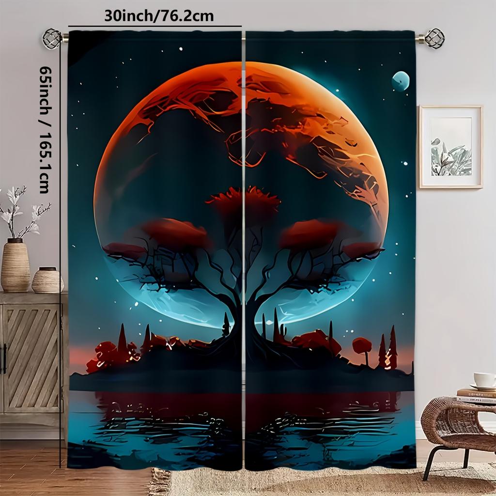 2pcs Set Tree & Planet Design Curtains-polyester Fiber Machine Washable Rod-shaped Pocket Can Be Easily Hung-very Suitable