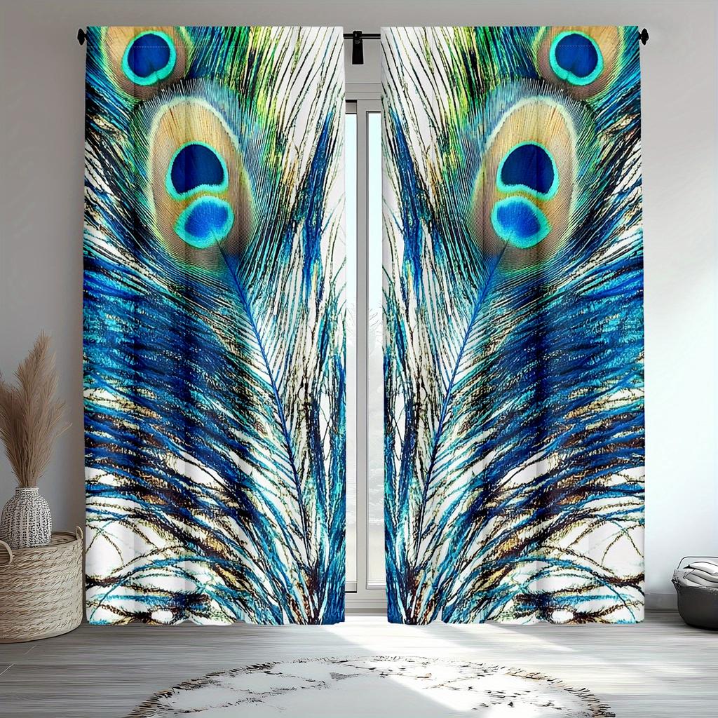 2pcs Vintage Peacock Feather Curtains Modern Home for Living Room & Bedroom